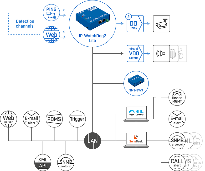 Der IP WatchDog2 Lite ist ein intelligentes Überwachungs- und Steuerungssystem für Netzwerkgeräte. Es erkennt automatisch, wenn LAN-Geräte wie Router, Switches, IP-Kameras oder Access Points nicht mehr erreichbar sind und reagiert sofort, ohne menschliches Eingreifen.