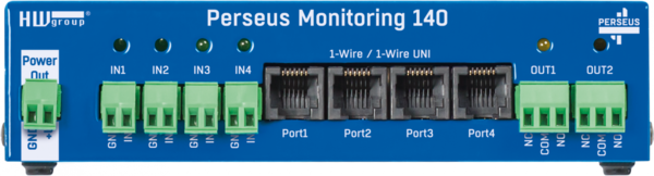 Perseus Monitoring 140 ist ein leistungsstarkes Werkzeug zur fortschrittlicher Fernüberwachung von Umgebungsbedingungen. Es verfügt über 4x RJ11 Port/Anschluss (1W-UNI), eine RS-485 Schnittstelle für Modbus/RTU, mehrere digitale Ein-/Ausgänge (DI / DO (Relais)) und einen WLD Port für die Leckage Detektion/Wassererkennung. Das Messgerät ermöglicht die Fernüberwachung vor Ort über LAN und kann bis zu 1000 externe Sensoren anschließen. Perseus 140 kann Daten von externen Sensoren und anderen HW group-Geräten, die über LAN verbunden sind, kombinieren und analysieren.