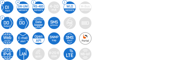 Der Perseus Monitoring 145 verfügt über ein LTE-Modem und ist ein effektives Instrument für die erweiterte Fernüberwachung von Umgebungsbedingungen. Perseus ermöglicht die Integration sämtlicher Sensoren an einem entfernten Ort, sei es ein Telekommunikationsraum, eine Industrieanlage oder ein Lager.