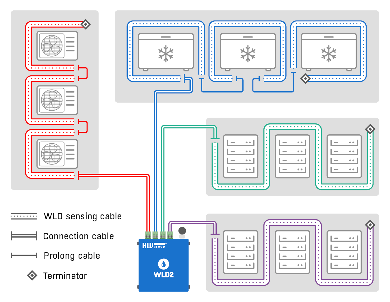 Das Water Leak Detection System (WLD) von HW group bietet eine zuverlässige Lösung zur Wasserleckerkennung. Mit dem WLD-Sensorkabel (WLD sensing cabel A) wird Wasser entlang der gesamten Kabellänge erkannt, wobei bereits bei wenigen Tropfen Wasser ein Alarm ausgelöst wird. Die richtige Wassererkennung und frühzeitige Alarmierung sind in vielen Unternehmen, wie z.B. in Rechenzentren, unerlässlich. Das Water Leak Detection System von HW Group schützt Ihre Einrichtung vor kostspieligen Wasserschäden.